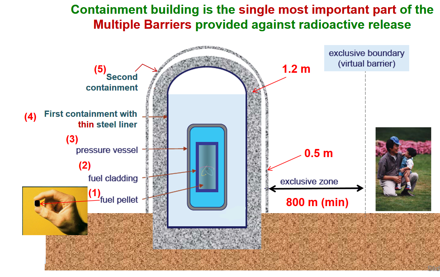 রূপপুর পারমাণবিক বিদ্যুৎ প্রকল্পটি দেশীয় ও আন্তর্জাতিক সকল বাধ্যবাধকতা বিবেচনায় নিয়ে এবং আন্তর্জাতিক মানদন্ড অনুসরণ করে যথাযথ উপায়ে ধাপে ধাপে প্রয়োজনীয় কার্যাদি সম্পাদনের মাধ্যমে এগিয়ে নেয়া হচ্ছে। এক্ষেত্রে মানব সম্পদ উন্নয়ন থেকে শুরু করে রিঅ্যাক্টরের নিরাপত্তা নিশ্চিতকরণ, পরিবেশের ভারসাম্য সংরক্ষণ এবং আনুষঙ্গিক বিষয়াদি সর্বোচ্চ গুরুত্ব দিয়েই প্রকল্পের কাজ সম্পন্ন করা হচ্ছে। পারমাণবিক বিদ্যুৎ কর্মসূচি বাস্তবায়নের জন্য একটি দেশের দীর্ঘ মেয়াদী জাতীয় সিদ্ধান্ত থাকা প্রয়োজন। দেশের স্বার্থে রূপপুর পারমাণবিক বিদ্যুৎ প্রকল্প বাস্তবায়নে জড়িত সকল ব্যক্তিবর্গ, জাতীয় পর্যায়ের নীতিনির্ধারণী মহল এবং সর্বস্তরের পেশাজীবীদের মাঝে প্রকল্প বাস্তবায়নের প্রয়োজনীয়তা সন্দেহাতীতভাবে প্রতিষ্ঠিত হলে এবং সততার সাথে প্রকল্প বাস্তবায়নের কাজে উদ্যোগী হলেই যথাসময়ে রূপপুর পারমাণবিক বিদ্যুৎ প্রকল্পটি বাস্তবায়ন নিশ্চিত করা যাবে। রূপপুরে নির্মিতব্য ভিভিইআর টাইপ রিঅ্যাক্টর-এর নিম্নবর্ণিত (ছবি) পাঁচ স্তরের নিরাপত্তা বৈশিষ্ট্য থাকবে।